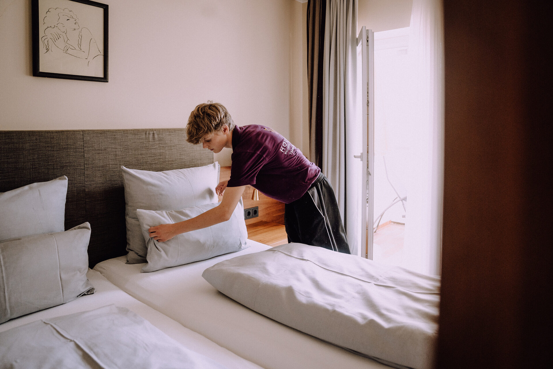 - Housekeeping (Reinigung und Kontrolle der Zimmer und der öffentlichen Bereiche sowie Umgang mit Reinigungsmittel und Wäsche)